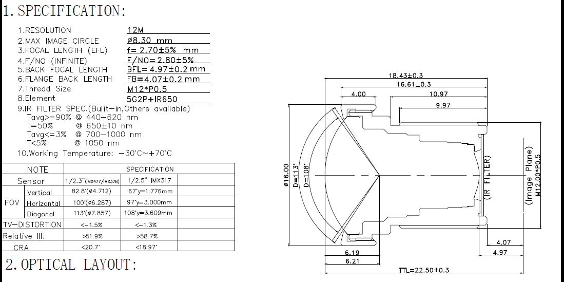 1/2.3" IMX377 M12 S mount 2.7mm lens machine vision camera lens