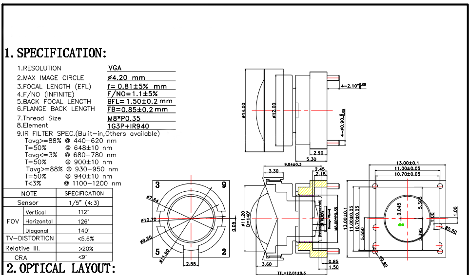 Viewing Angle | DFOV=140 HFOV=126 VFOV=112 |