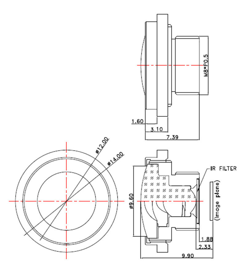 | StyleNo. | Sensor Size | EFL(mm) | F/NO | Field of view | TTL(mm) | Distortion | Structrue | Threadsize | Image |