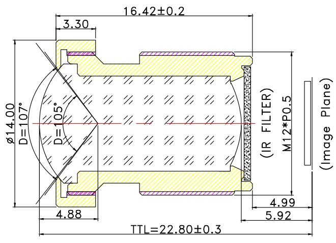 | 1/2.3" | 3.56 | 2.50 | D=105(H=88,V=695) | 22.8 | <- 16.5% | 7E | M12*P0.5 | 12MP |