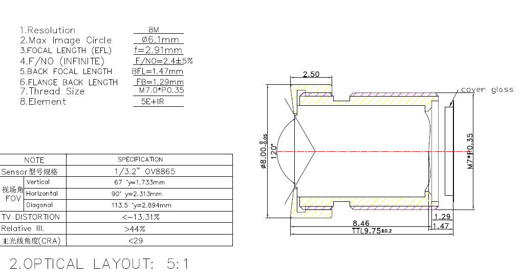 Mini camera 2.91mm m7 cctv lens 8MP for 1/2.7" cmos sensor wide angle ip camera