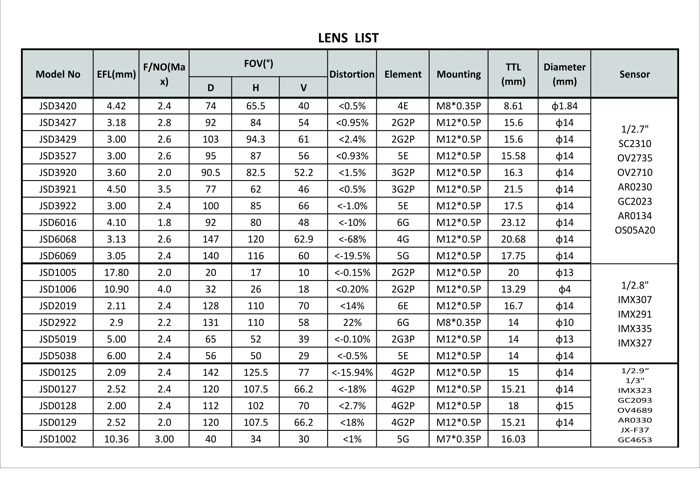 Drone Camera FOV 135 degrees 2.09mm F2.6 Wide Angle M7 Lens