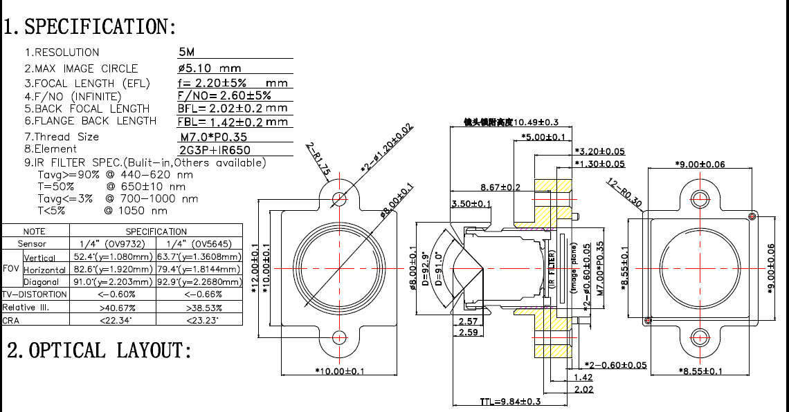 | *FOV | DFOV=91 HFOV=8220 VFOV=52 |