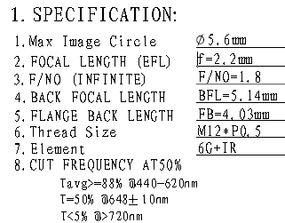 M12 1/3" EFL 2.2mm FOV 108 degree Lens for Car camera