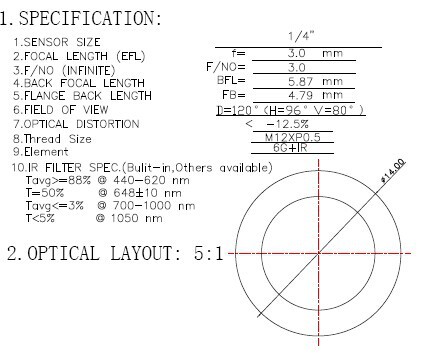 6G m12 1/3.2" OV5653 EFL 3mm HFOV 90 degree cctv lens