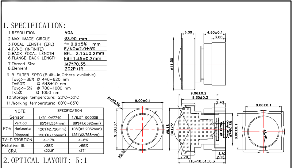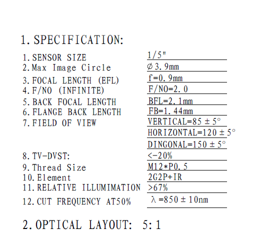 m7 m8 1/5" OV7740 EFL 0.9mm HFOV 120 degree AR lens