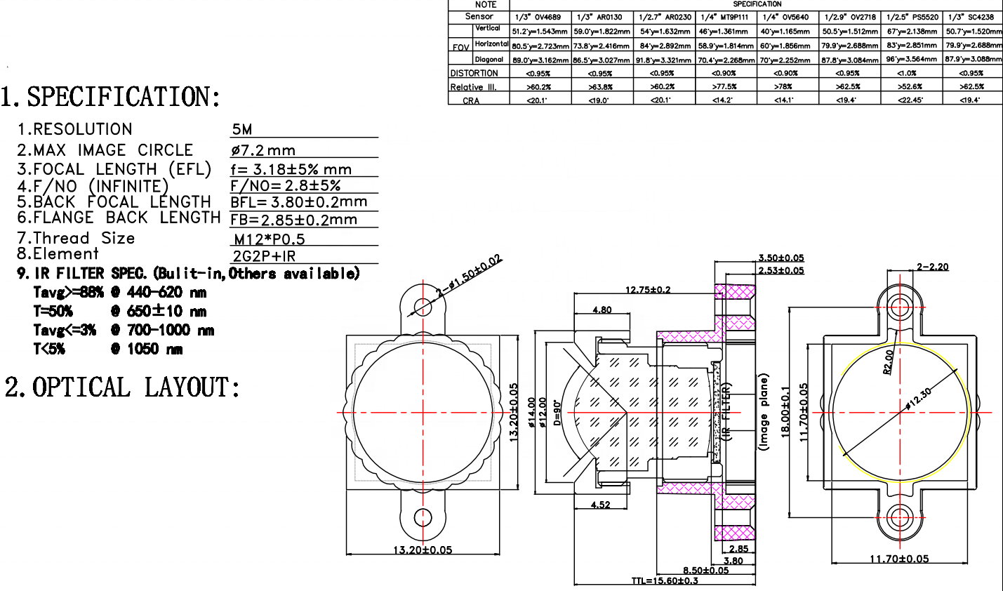 1/4" MI500 4MP TTL15.61 Hd F2.8 M12 for Smart home lens