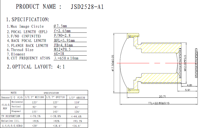6G M12 Mount drone lens 5MP 2.8mm Car cam Lens