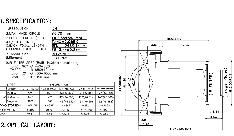 6G m12 1/2.7" F2 HFOV 148 degree for Car cam Lens
