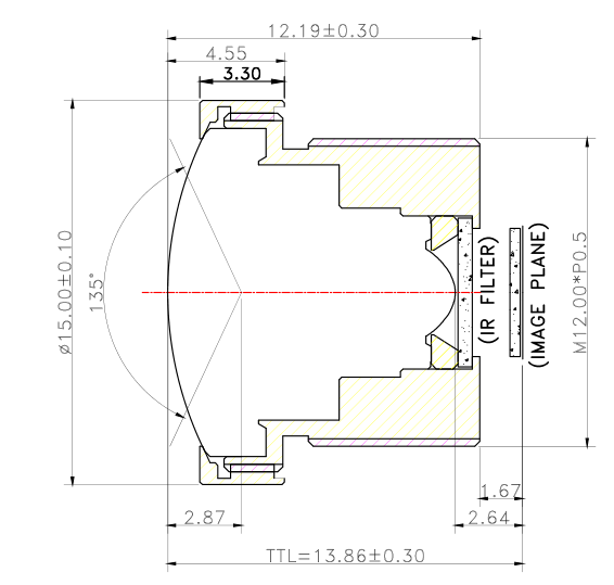 2MP 1/4" sensor FOV 135 degree M12 lens waterproof optic lens