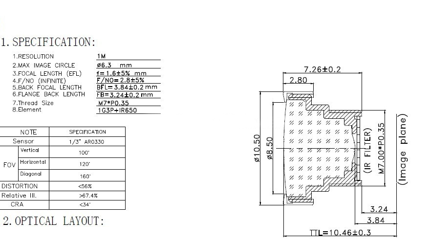 M7 miniature camera lens focal length 1.6mm 160 FOV cctv lens