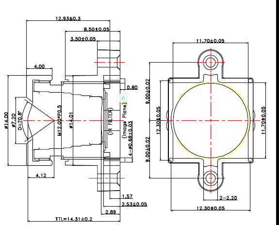 . Support up to 1/3" cmos sensor