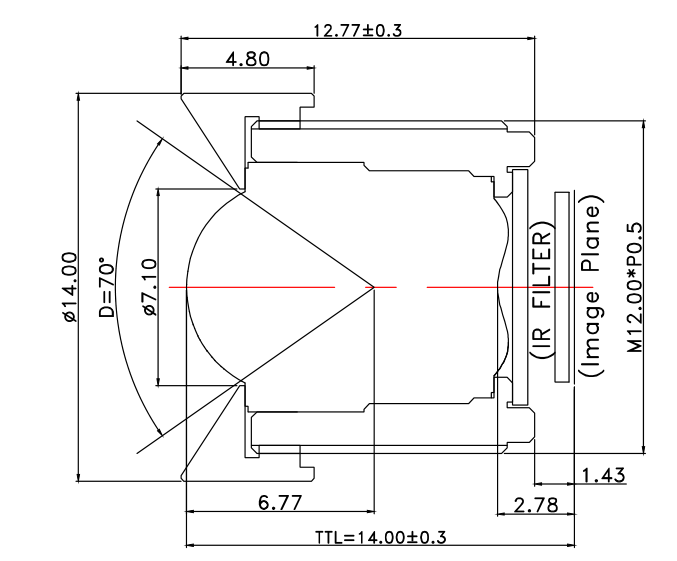 Low distortion 1/2.8" image format 5mm FOV 65 degree M12 wide angle lens