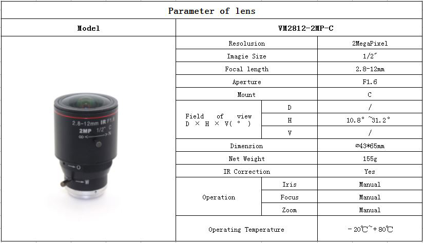 2MP Varifocal CCTV Lens 2.8-12mm with 1/2" C Mount Lens for IP Camera