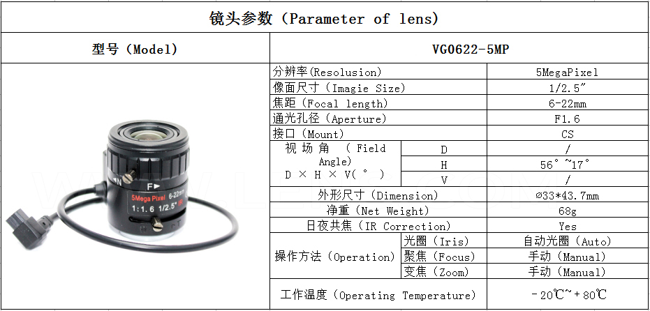 5MP 6-22mm Auto Iris Varifocal CS Mount CCTV Camera Lens
