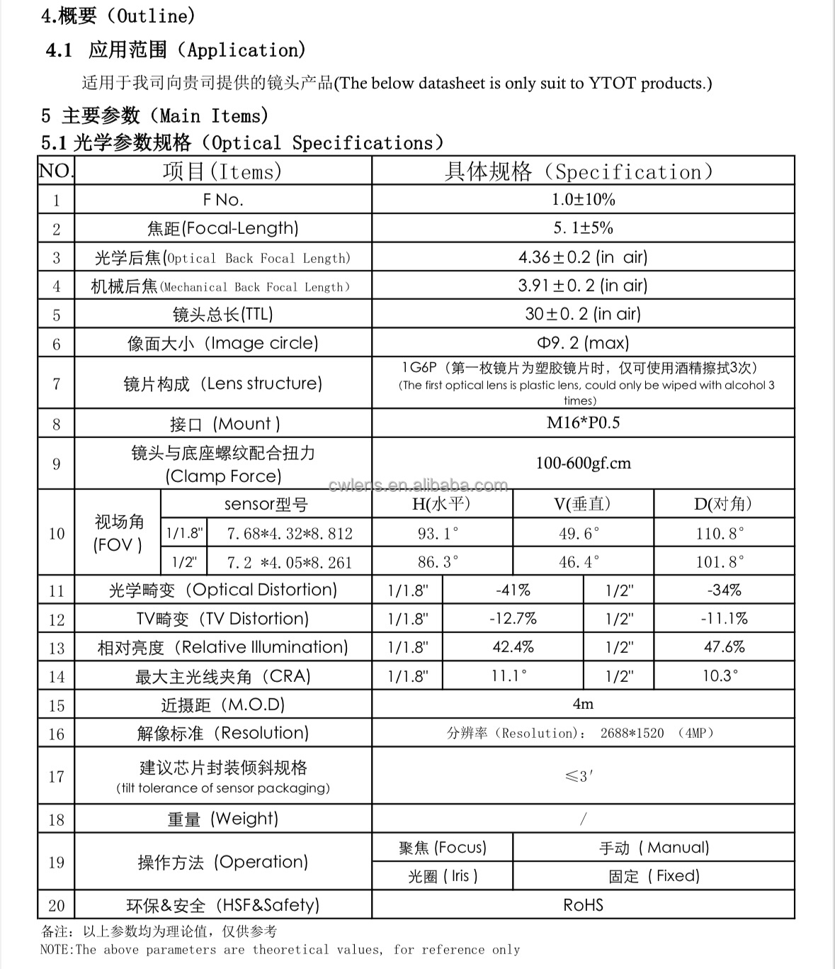 YTOT 8Megapixels 4mm 1/1.8"4K M16 Mount F1.0 Dark Lens