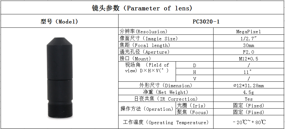 Pinhole Lens 30mm Long Distance M12 Mount CCTV Lens