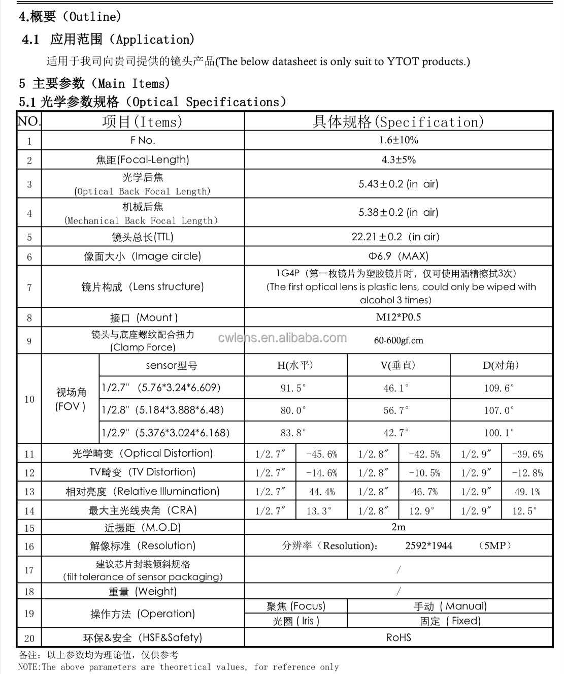| Flange back focal lenght | 4mm+0.2(in air) |