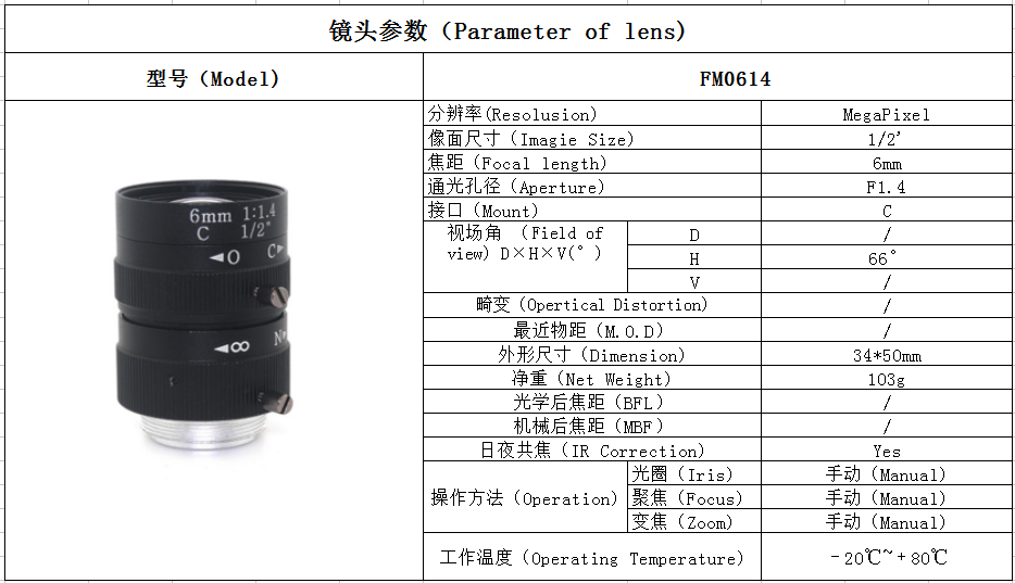 6mm 3Megapixel Manual Fixed Lens C Mount CCTV Industrial Lens