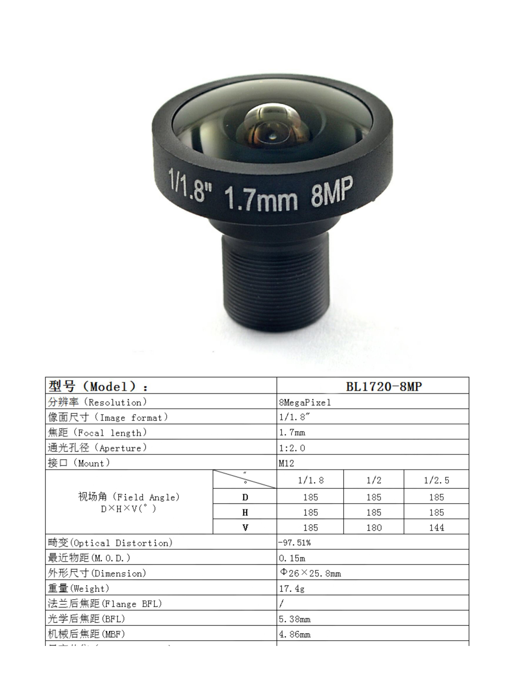 1.7mm 1/1.8" HD 8MP M12 VR Fisheye Lens Camera Accessories