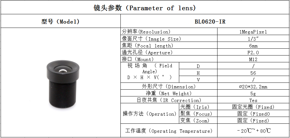 6mm 2MP F2.0 Aperture M12 Mount HD CCTV Board Lens