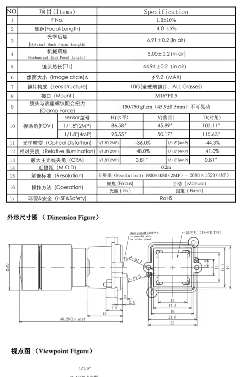 | LENS 4MM-4MP+Holder Quality Assurance Use For 4MP/5MP AHD/IP PCB |