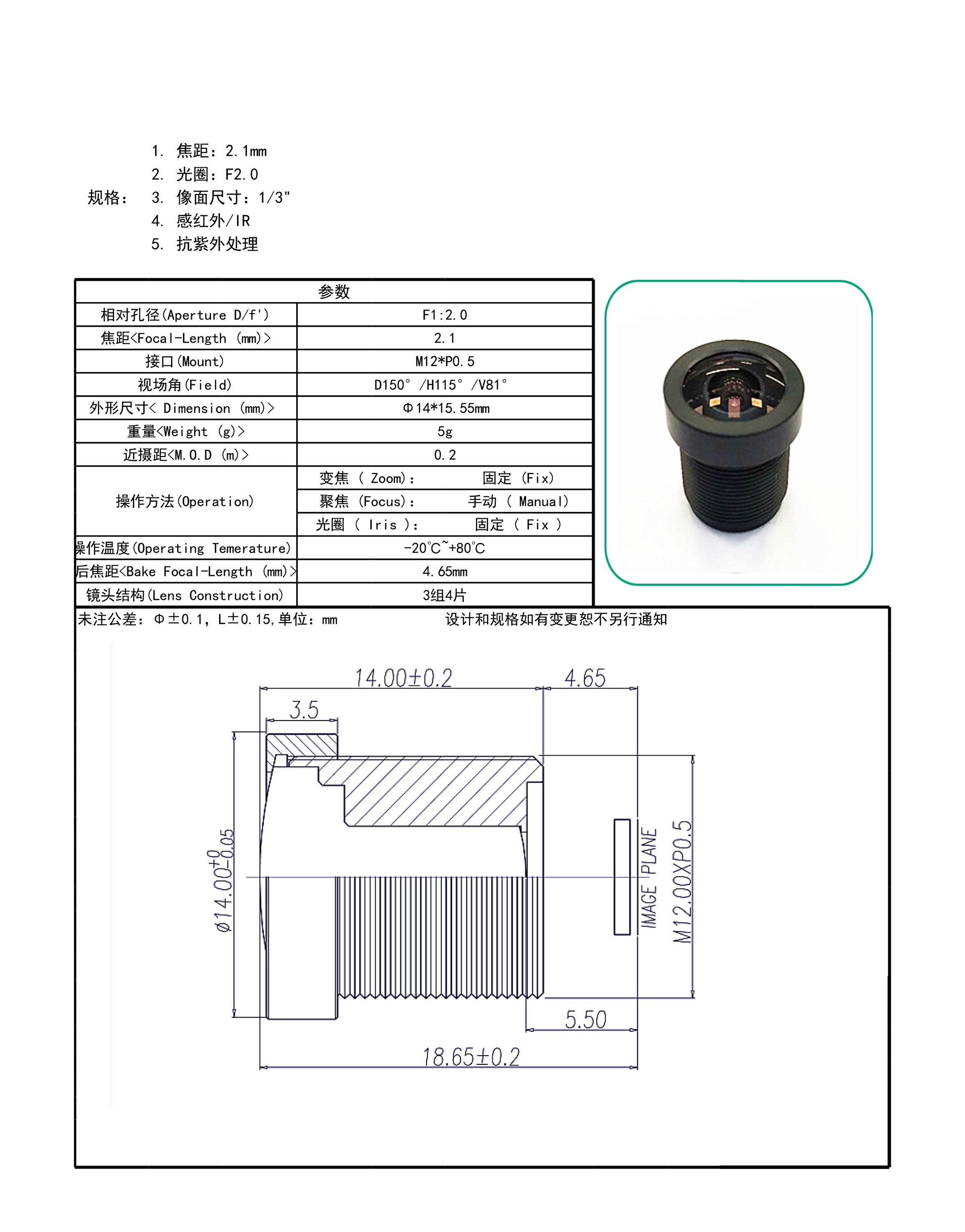 | Focal Length | 2.1mm |