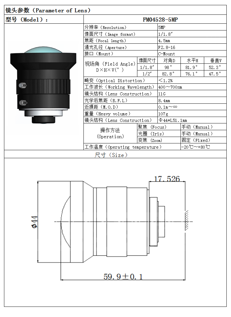 | Focal Length | 4.5MM |
