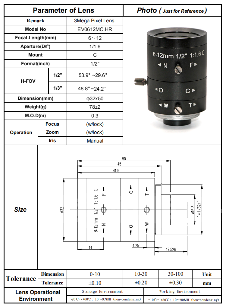 6-12MM 3Mega Pixel 100mm CCTV Lens C-Mounts Industrial lens For AHD HD IP Camera box