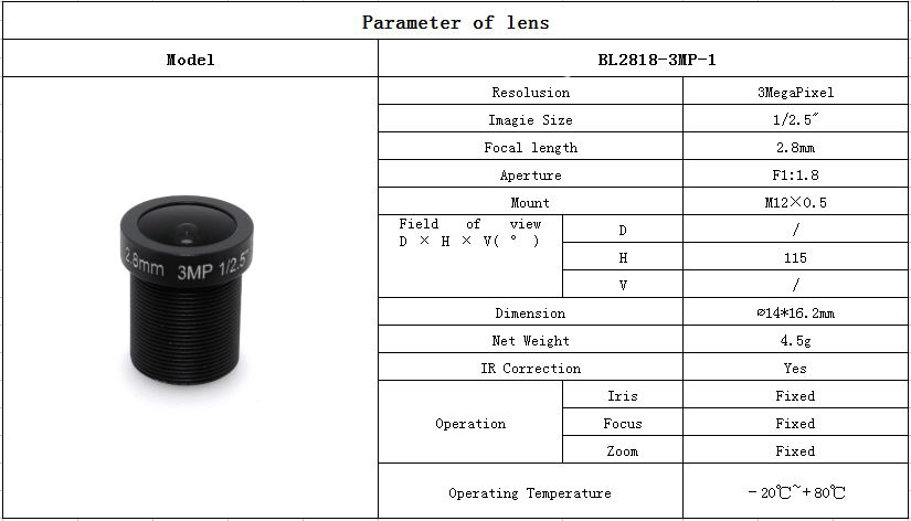 Board lens 2.8mm 3.0 Megapixel 115 degree F1.8 1/2.5" M12 mount CCTV LENS