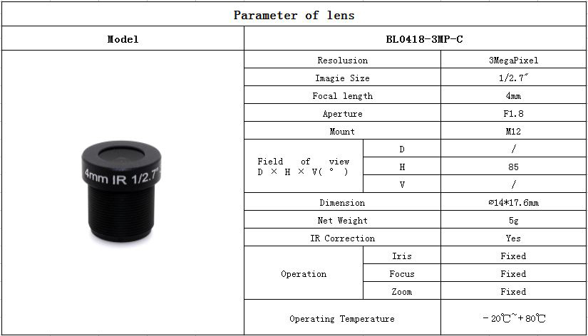 Board lens 4mm 3.0Megapixel F1.8 1/2.7"