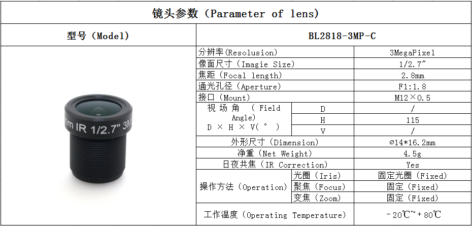 2.8mm 3MP 1/2.7" M12 Mount Wide Angle Lens CCTV Lens