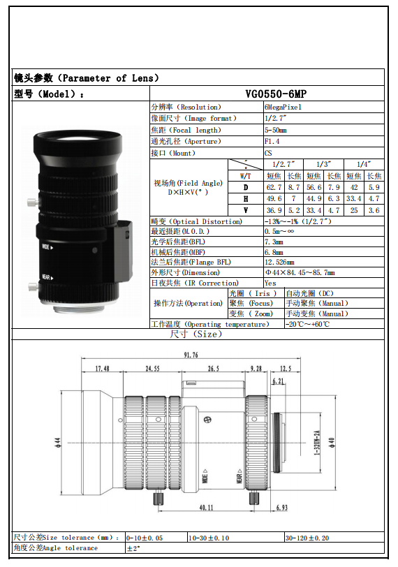 6MP CCTV Lens 5-50mm CS Mount With Auto Iris F1.4 For CCTV Camera