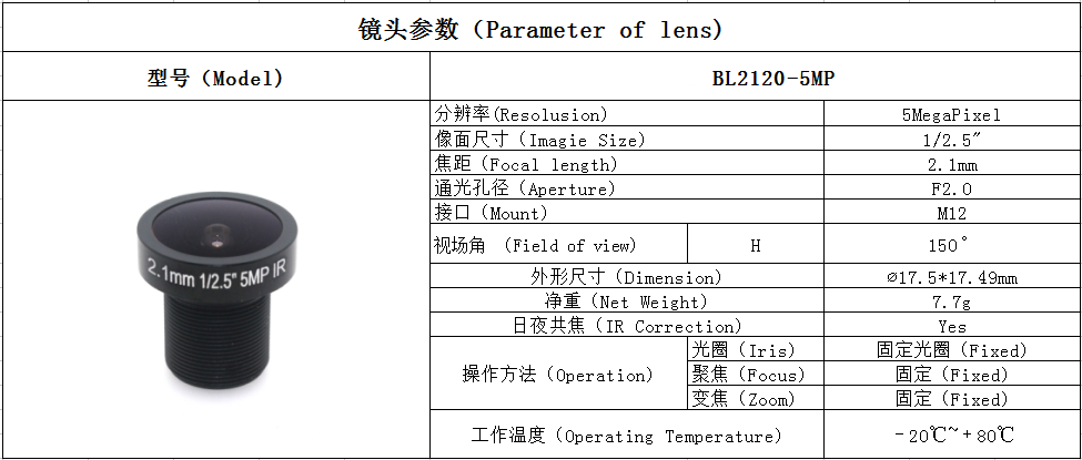 5MP 2.1mm 1/2.5" CCTV Fish eye Lens