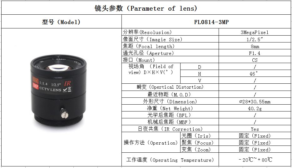 High Quality 3MP 8mm CS Lens 1/2.5" F1.4 CS Fixed IR 3.0 Megapixel CCTV Lens