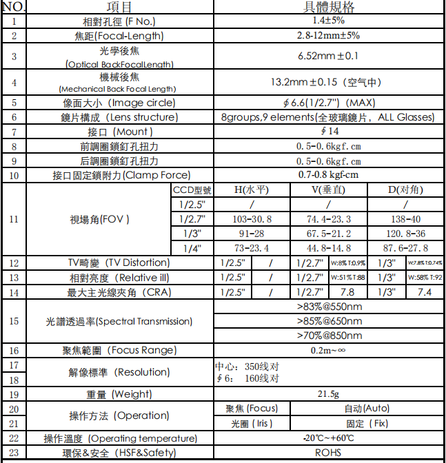 2.8-12mm F1.4 5MP Motorized Auto Iris IR CCTV Camera Lens