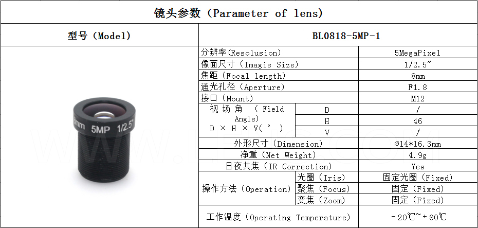 5MP 8mm IR Board Lens M12 F1.8 For IP camera or AHD Camera,Suitable for 1/2.5" CCD&CMOS PCB CCTV LENS