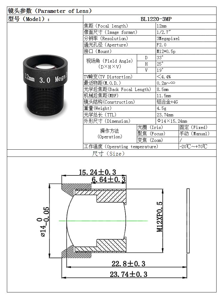 12mm F1.8 3MP Board Lens M12 Mount CCTV Lens