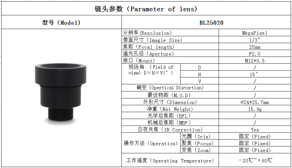 25mm F2.0 Board Lens M12 Mount CCTV Camera Lens CCTV Lens