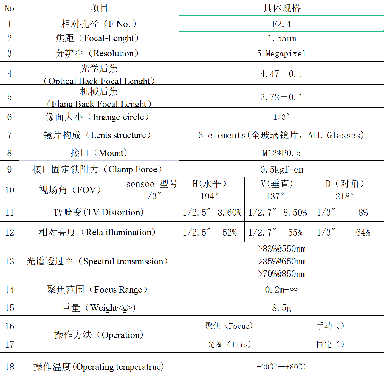 5MP 1.55mm Fisheye Lens 1/3 " CCTV LENS M12 MOUNT FOR FIT HD IP/AHD Camera