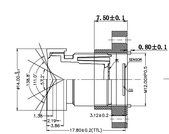 Surveillance camera lens wide angle lens 112 degree Back focal length 3.12mm lens