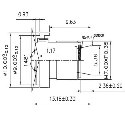 Car DVR camera lens total track length 13.18mm lens focal length 2.33mm lens