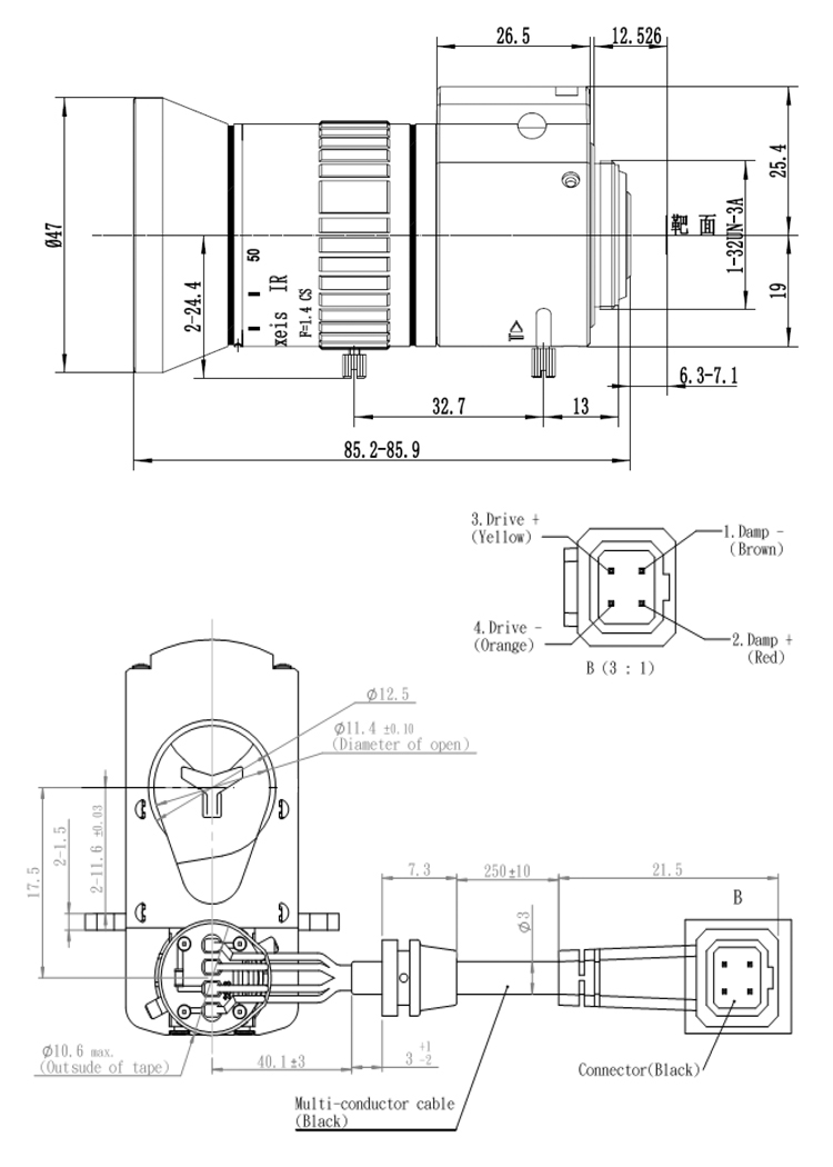 | Dimension | ø47X82.5~85.9mm | ||||||
