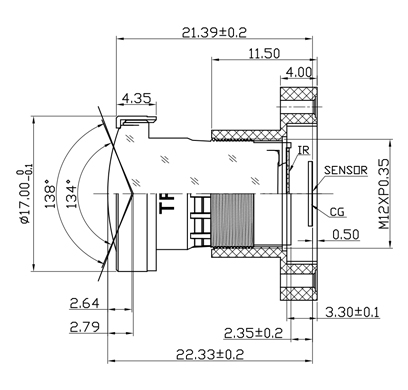 1/2.7" F1.19 138 degree 2G5P m12 wide angle board lens