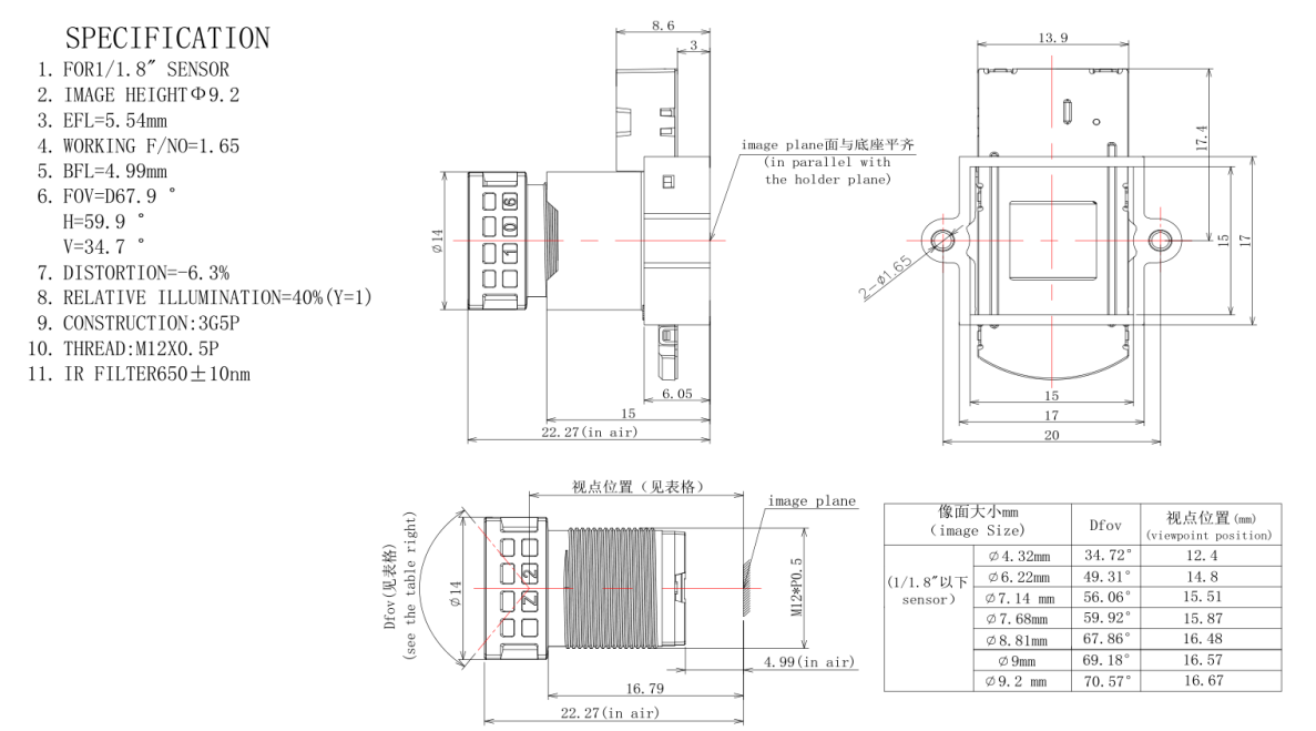 EFL 5.54mm HD lens for M12 interface 8MP resolution for 1/1.8" sensor CCTV camera Security camera board camera telephoto lens