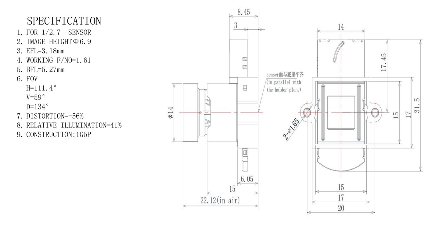 1/2.7" 3.18mm F1.61 Access control system lens wide angle CCTV LENS