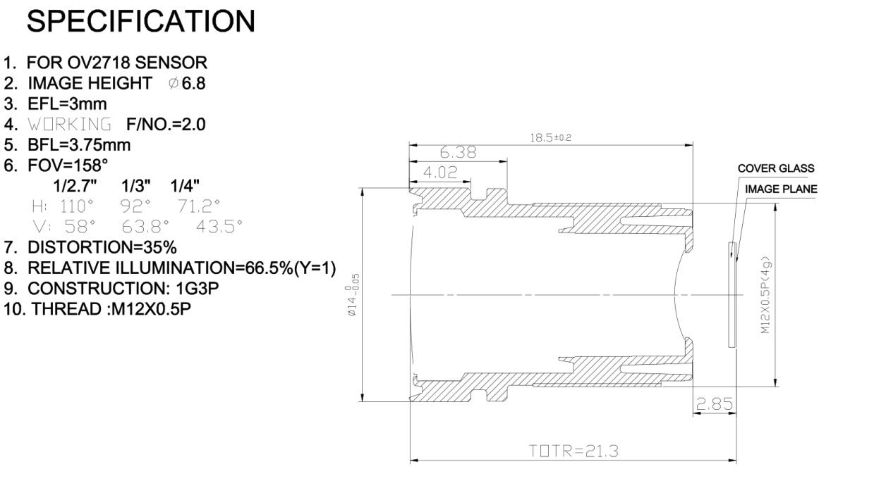 1/2.7" 3MP 8mm F1.5 M12 mount Fixed-Focus CCTV camera lens with IR-CUT