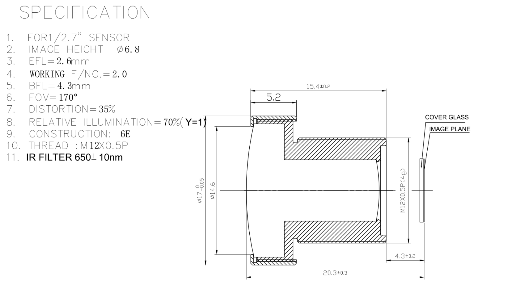 2.6mm 1/2.8" format 5MP M12 Mount MINI CCTV Lens for Car Camera