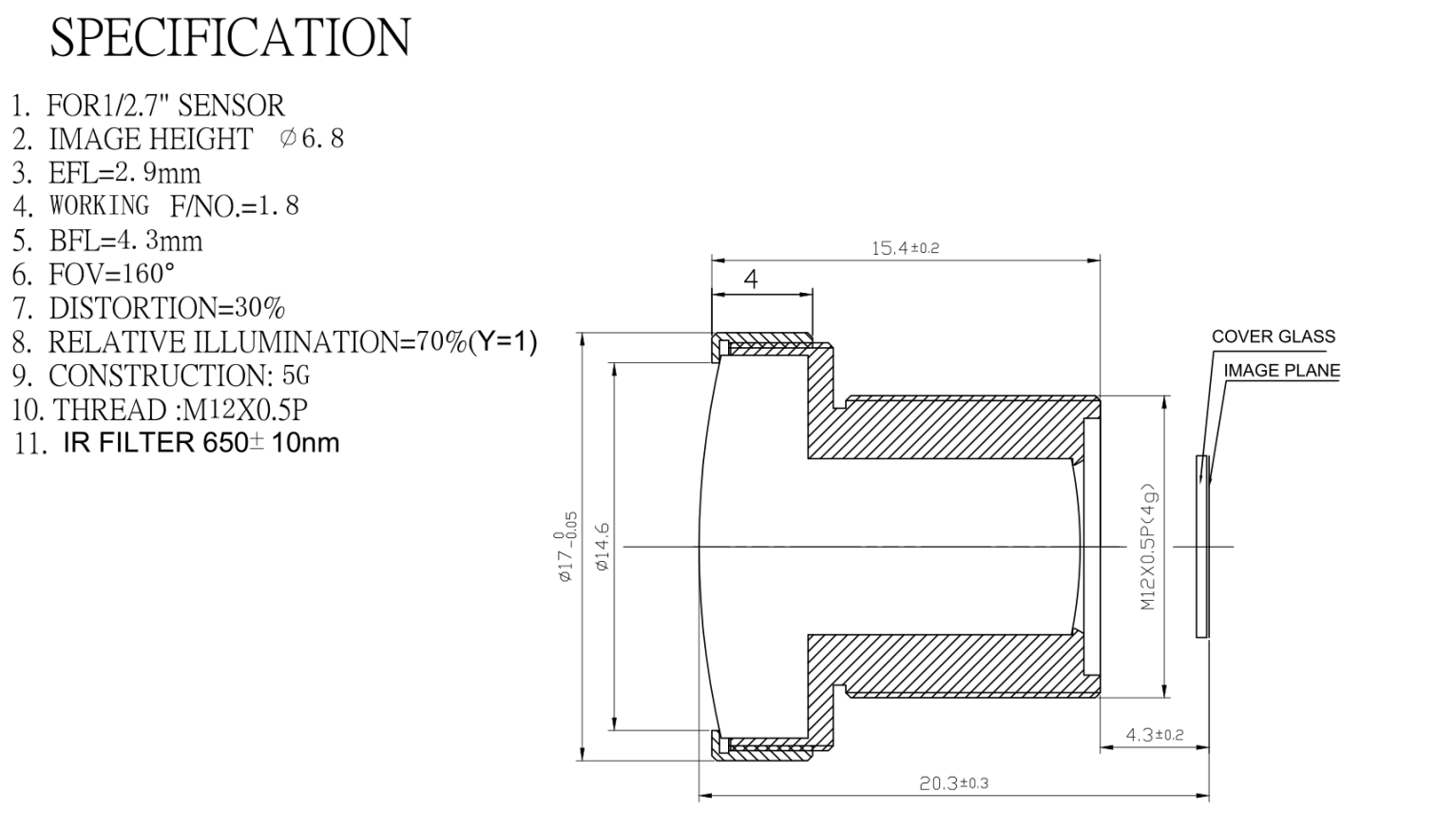 | Effective Focal Length=EFL | 2.9mm |
