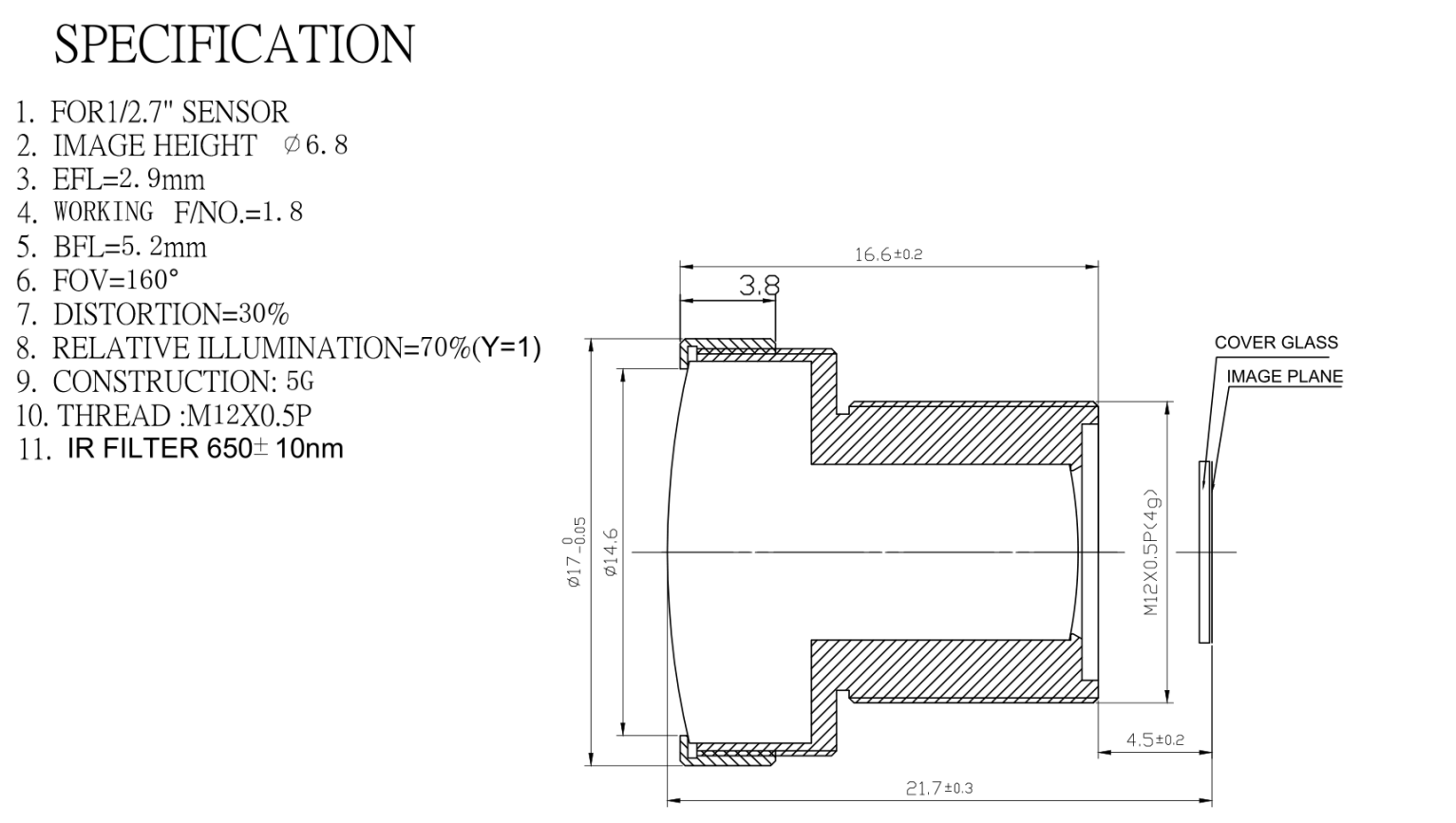 F1.8 2.9mm m12 mount wide angle automotive cctv board lente lens for 1/2.7" size sensor car camera